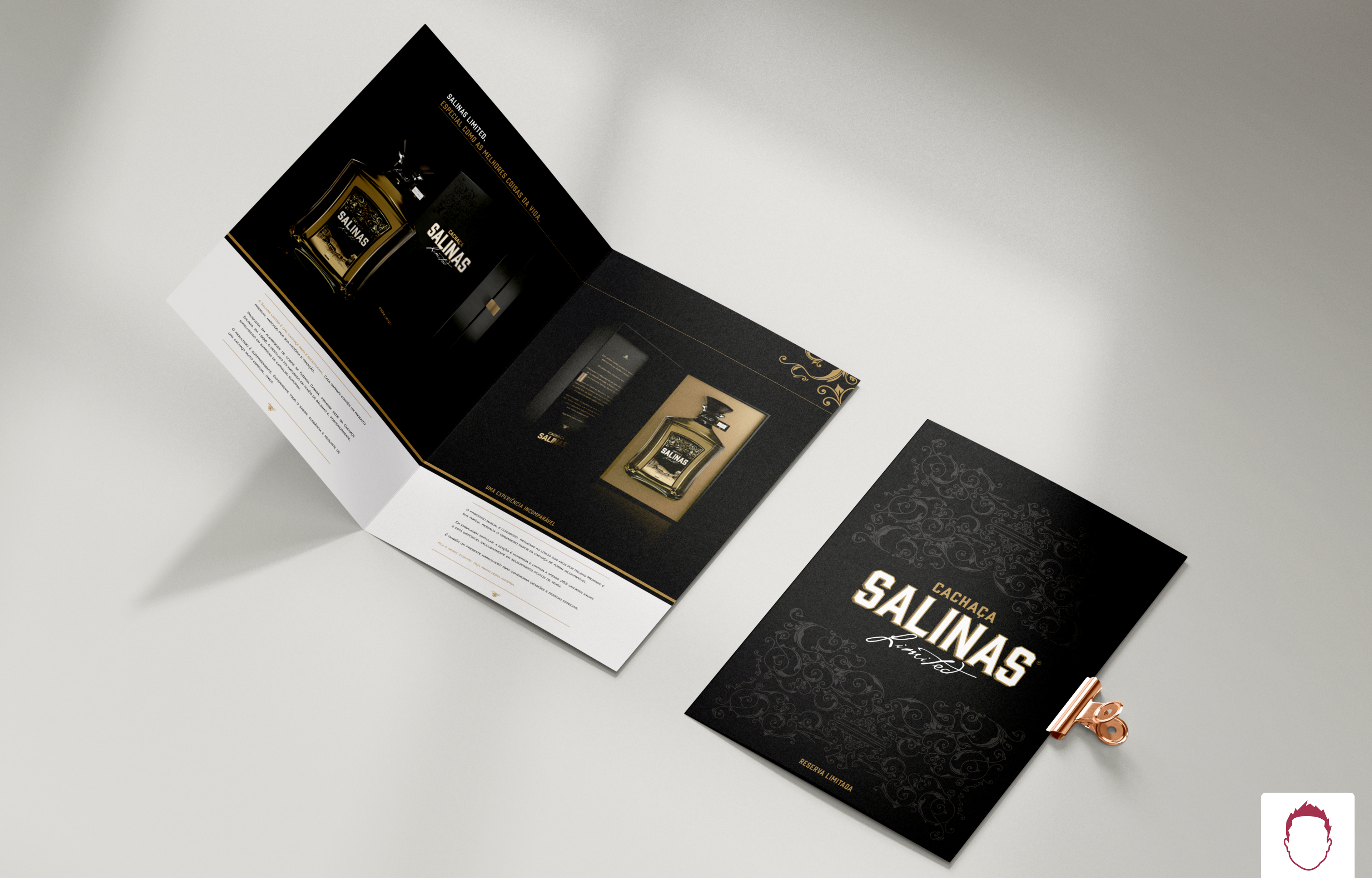 Folder de apresentação desenvolvido para o lançamento da Limited, um produto PREMIUM da Cachaça Salinas.