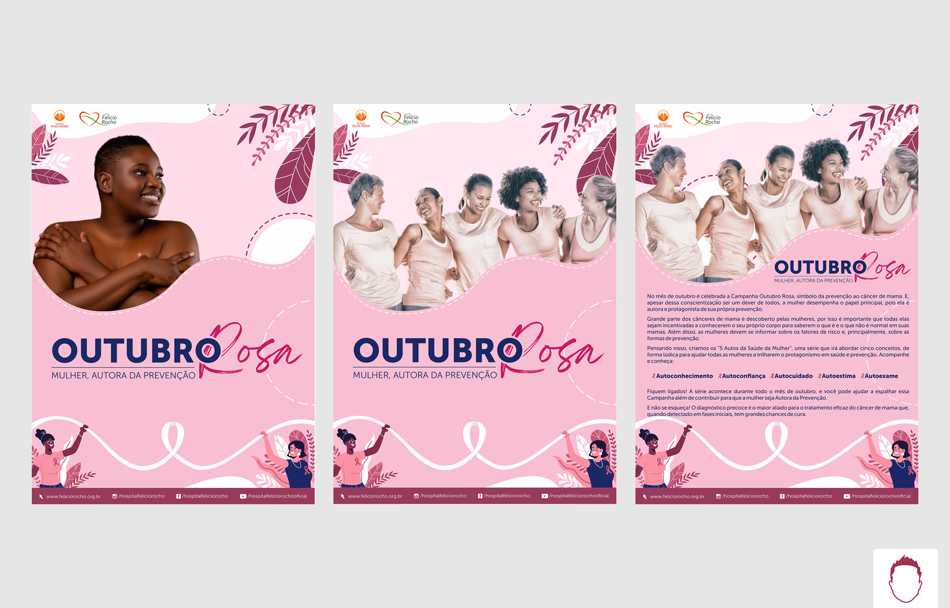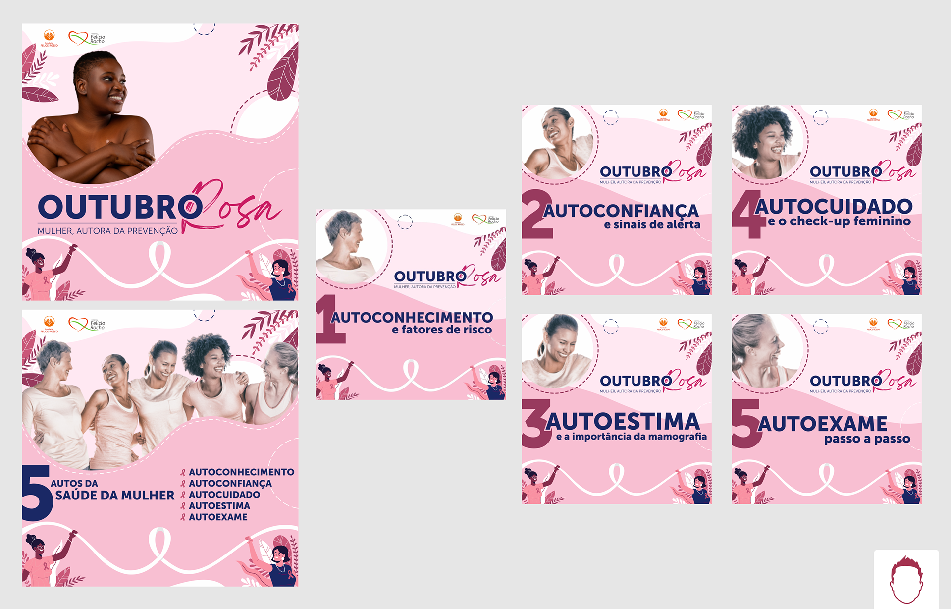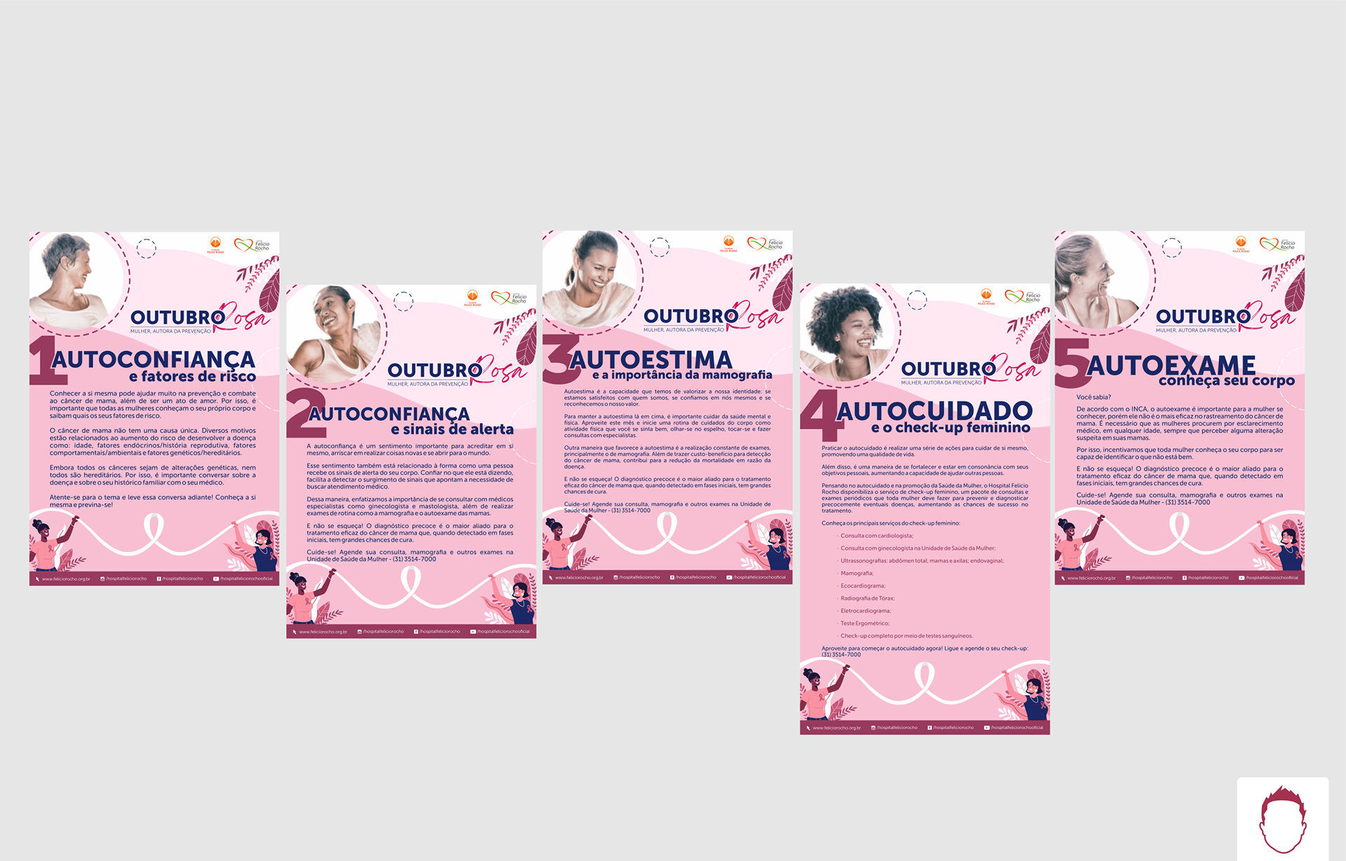 Identidade e projeto gráfico criado para a campanha do Outubro Rosa 2021 do Hospital Felício Rocho.
