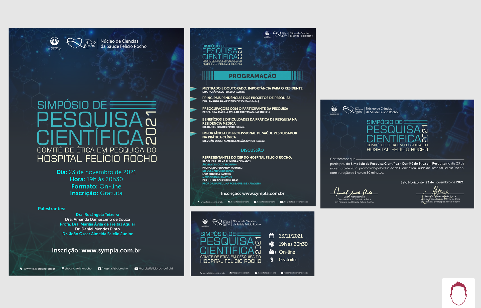 Projeto de comunicação e produção gráfica do Simpósio Pesquisa Científica do Hospital Felício Rocho